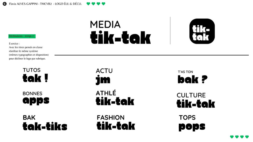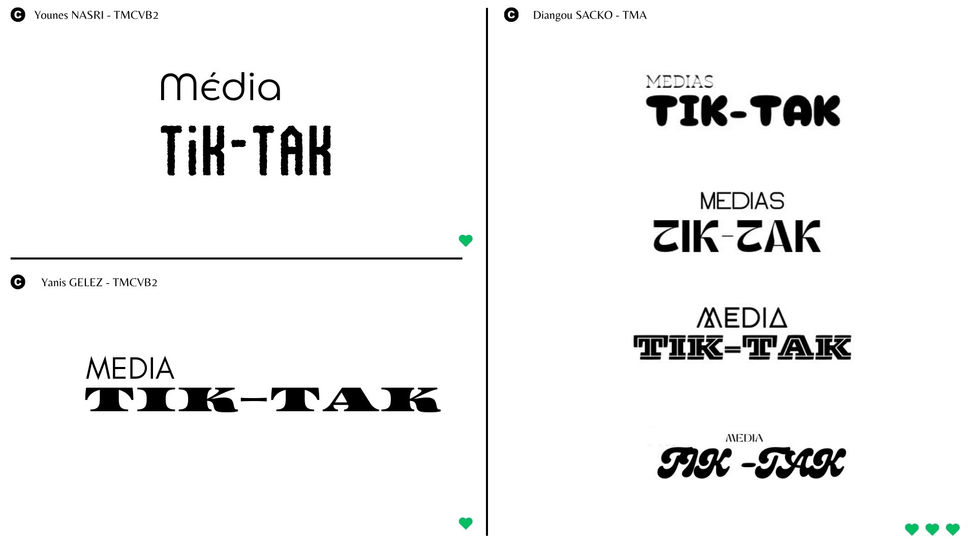 Utiliser seulement deux typographies et placer ces deux éléments de manière lisible dans l'ordre de lecture Media, tik-tak.